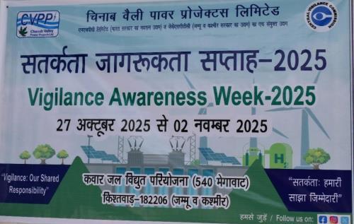 क्वार हाइड्रोइलेक्ट्रिक प्रोजेक्ट किश्तवाड़ में 27.10.2025 से 02.11.2025 तक सतर्कता जागरूकता सप्ताह-2025 मनाया गया